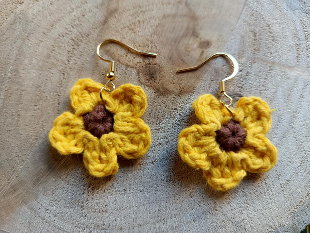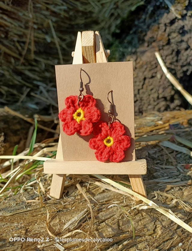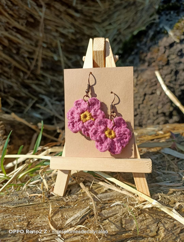 Boucles d oreilles fait main au fil de coton crocheté et montées sur crochets d oreilles en laiton couleur cuivré vieilli. Vendus avec stop silicone pour un meilleur maintien.