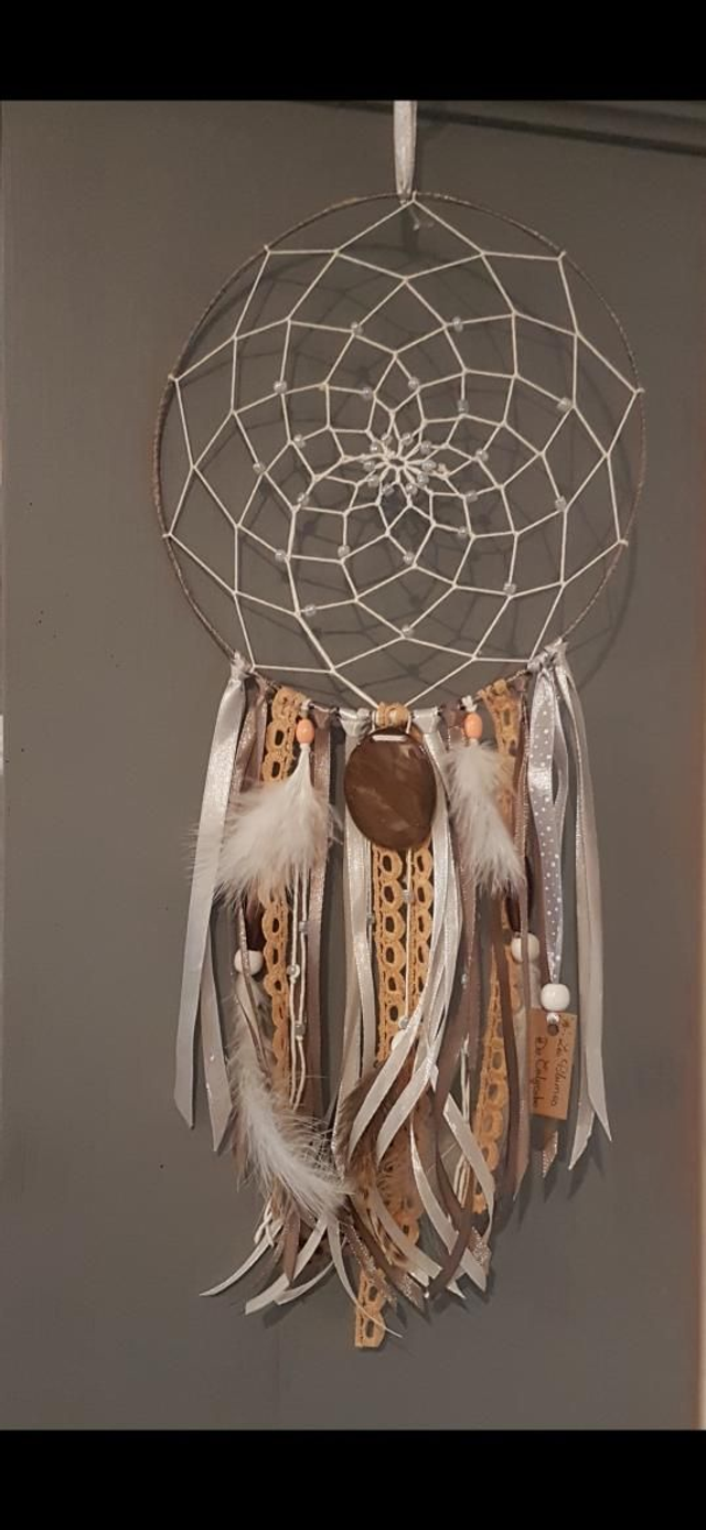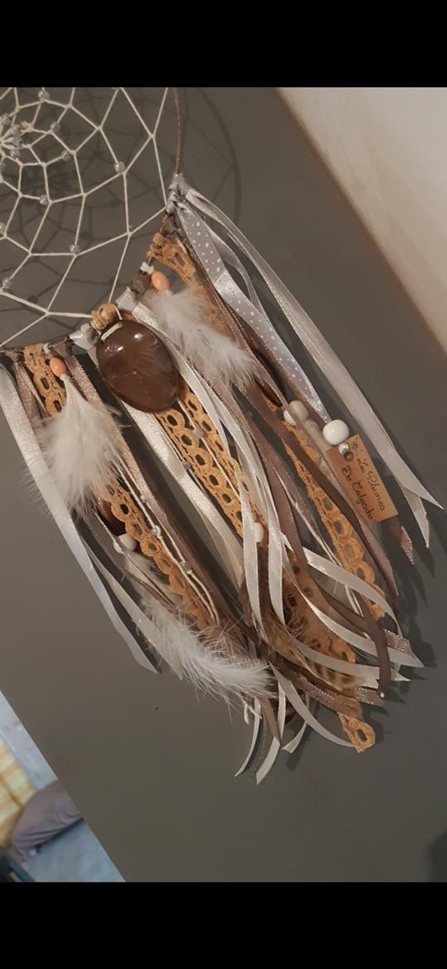 Plumes synthétique, ruban de satin et dentelles dans des tons doux et apaisant pour prendre place aussi bien dans une piece de vie que votre chambre.