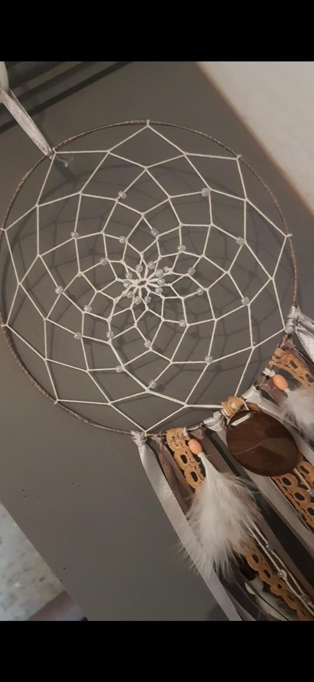 Attrape rêve en matériaux upcyclées du fil métallique pour le cercle aux breloques et perles reccuperer de vieux bijoux cassés.