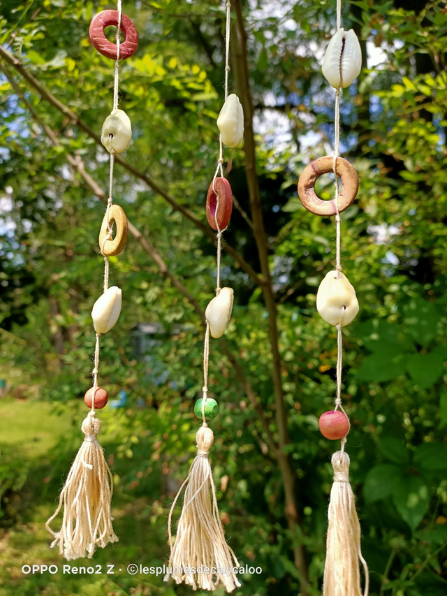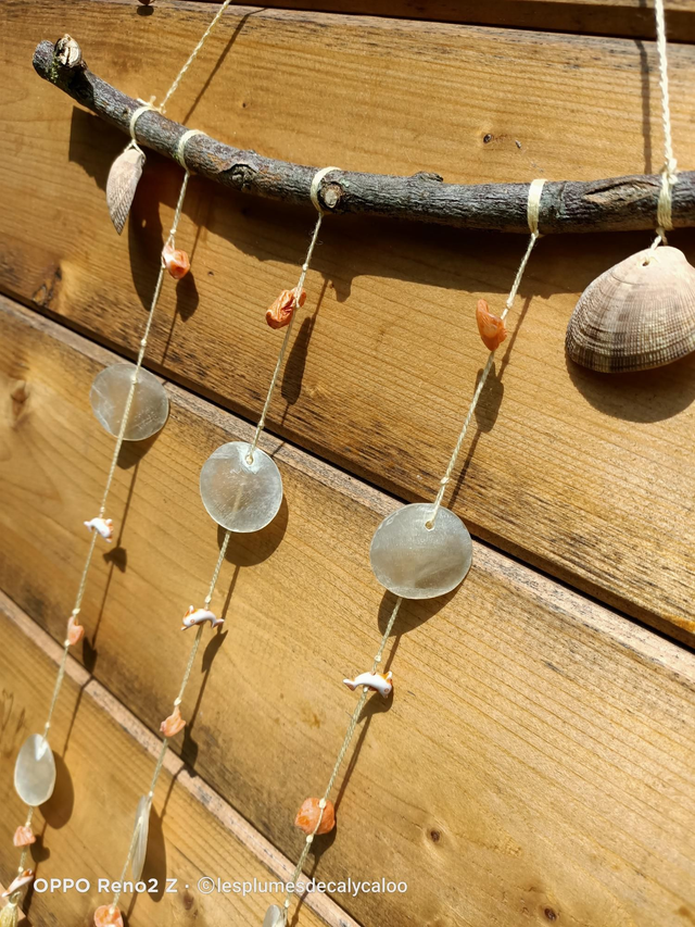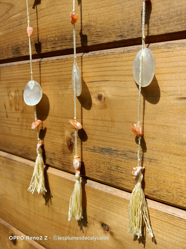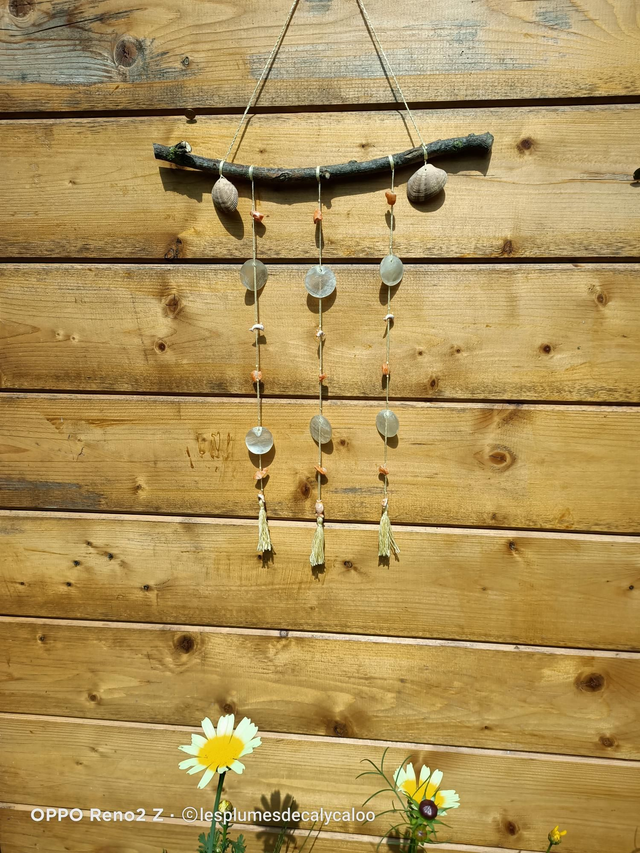 De jolie petites suspensions au theme des vacances a la plage... Monté a la main sur un morceau de bois, avec de véritables coquillages.